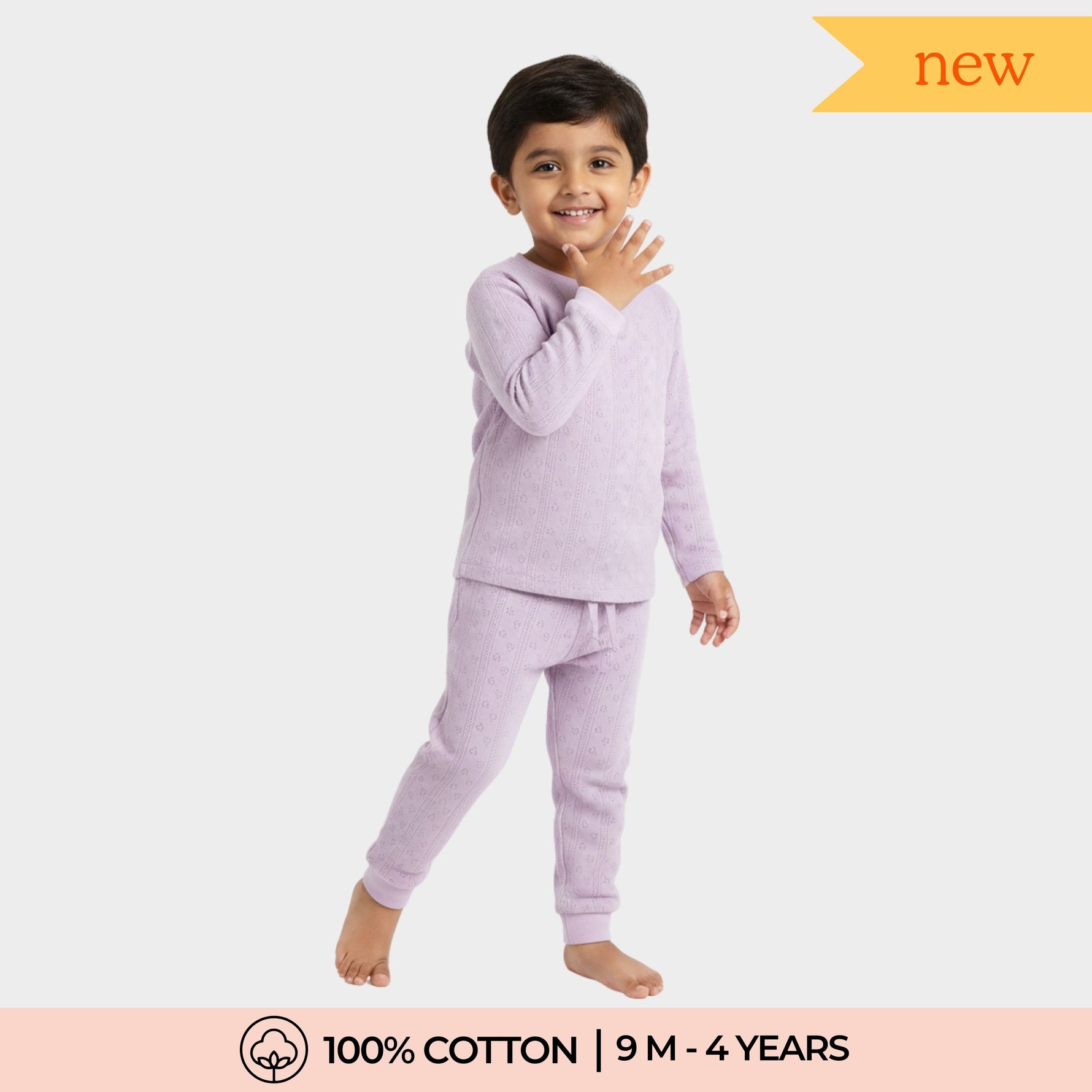 Orange Sugar’s Full Sleeves T-Shirt & Pant Coord Set, now in dreamy Pointelle knit—designed for gentle days, sound sleep, and endless cuddles.