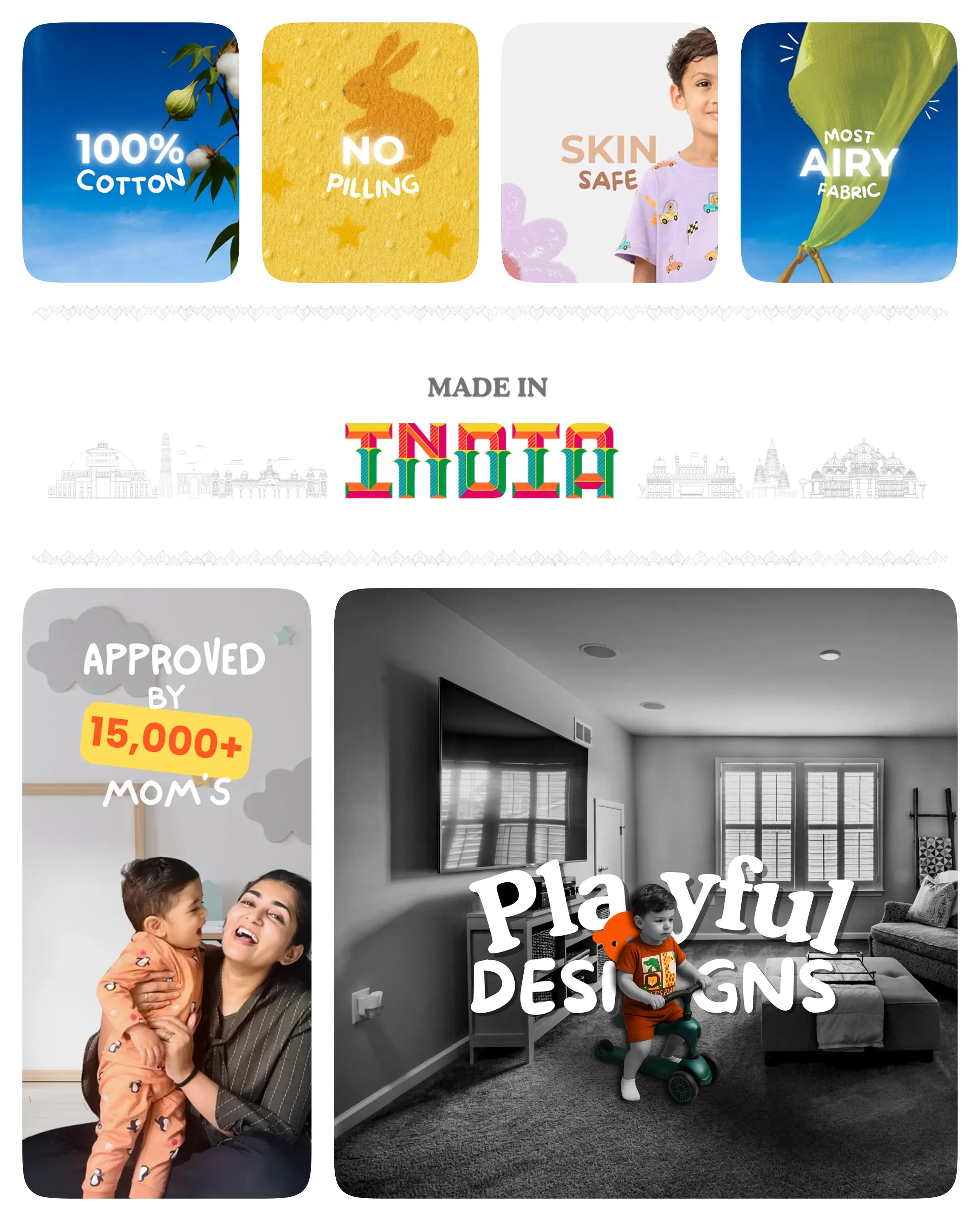 Breathable Fabric: Crafted with 100% breathable cotton, ensuring your little one stays comfortable throughout the day.
