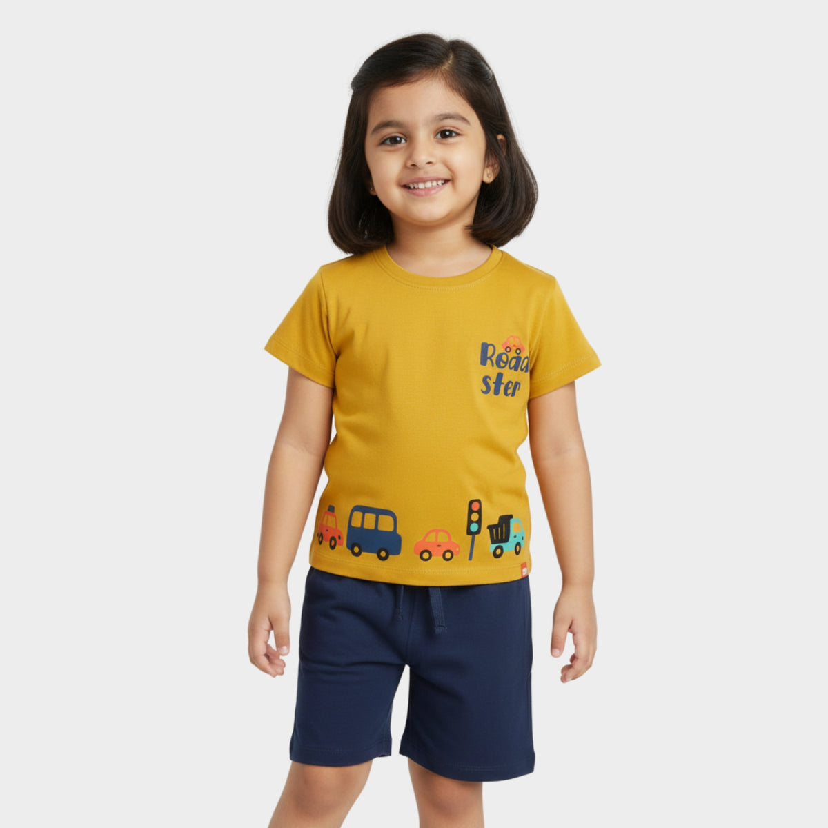 Wrap your little ones in unrivaled comfort and style with our delightful Orange Sugar Half Sleeves T-Shirt & Short Set, perfect for playful days and cozy nights.