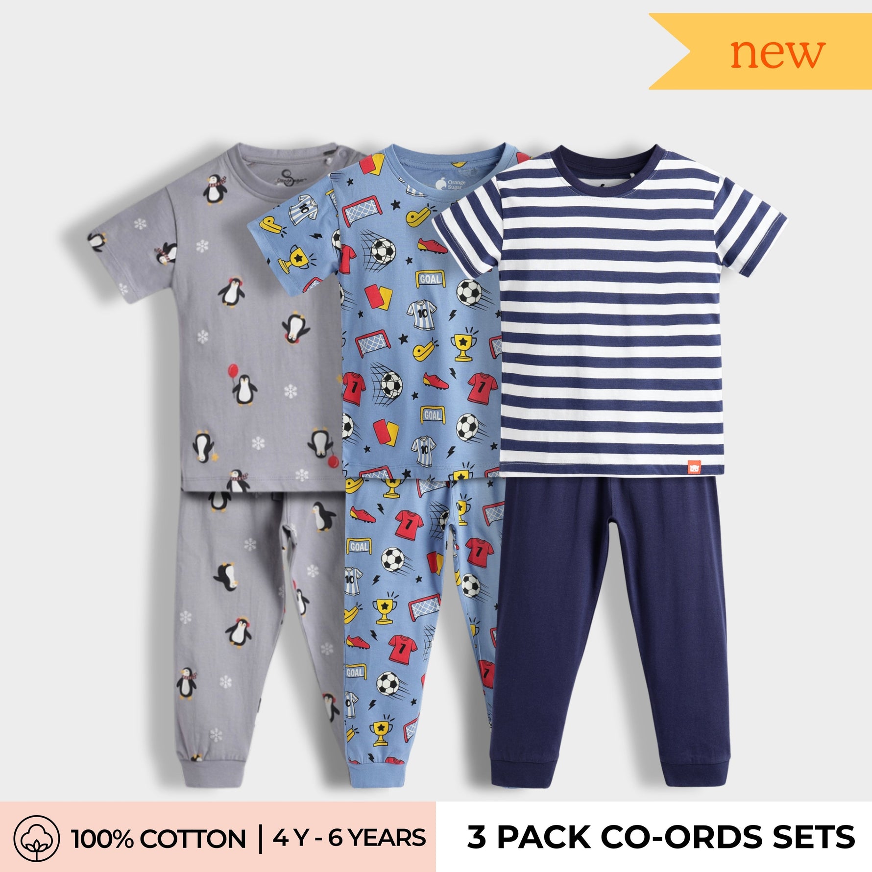 3 Pack Half Sleeves Unisex Co-ord Set | Penguin, Football, Blue Stripes