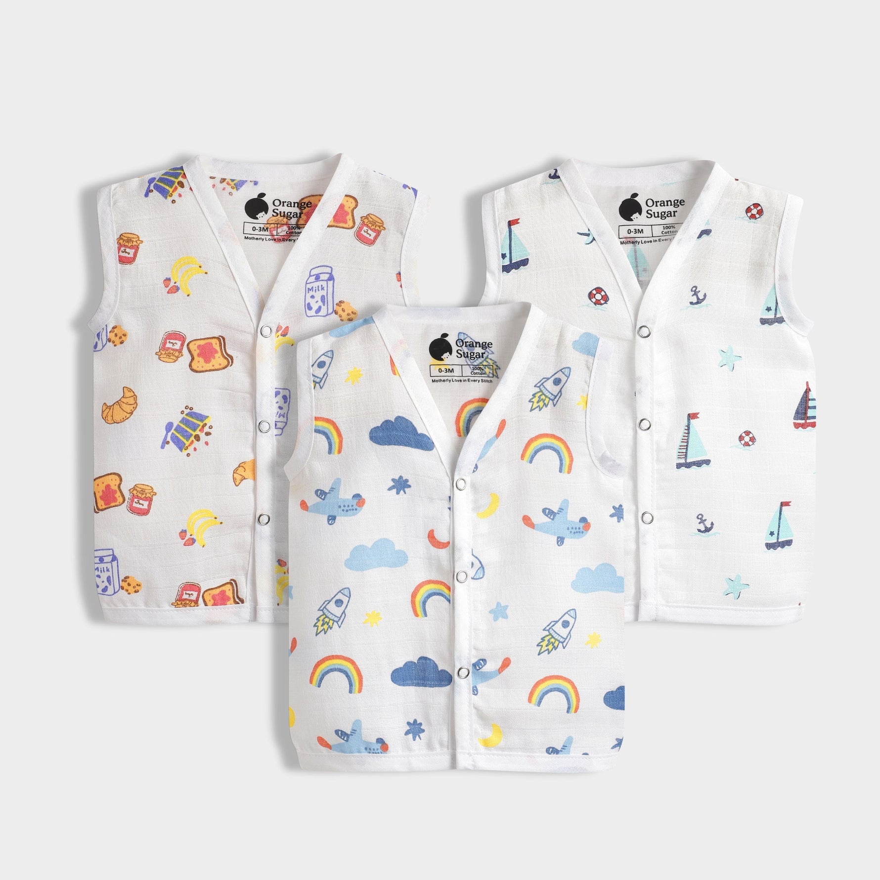 3 Pack Muslin Jhabla | Starry, Breakfast, Sailor