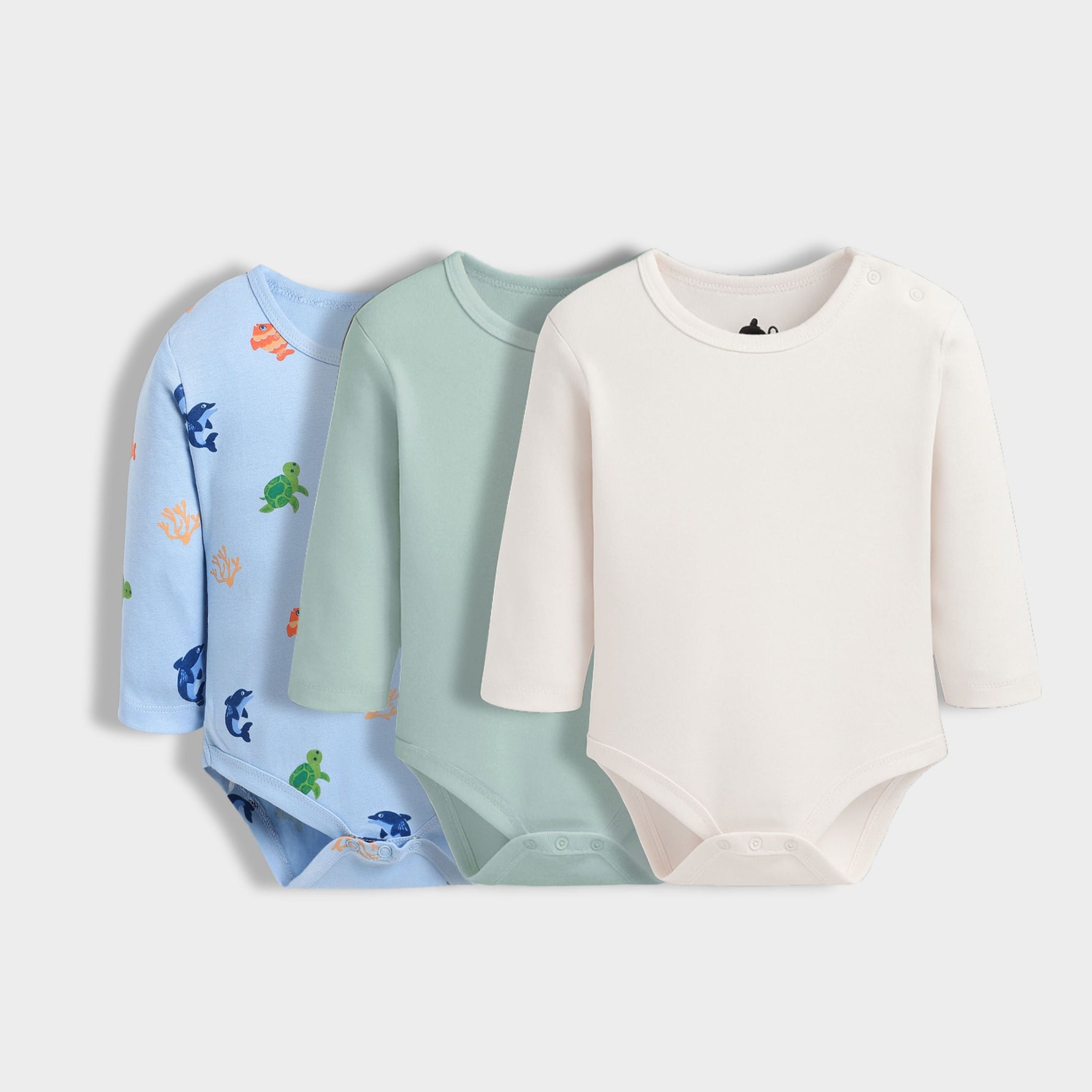 3 Pcs Full Sleeves Bodysuit | Light Green, Off White, Underwater