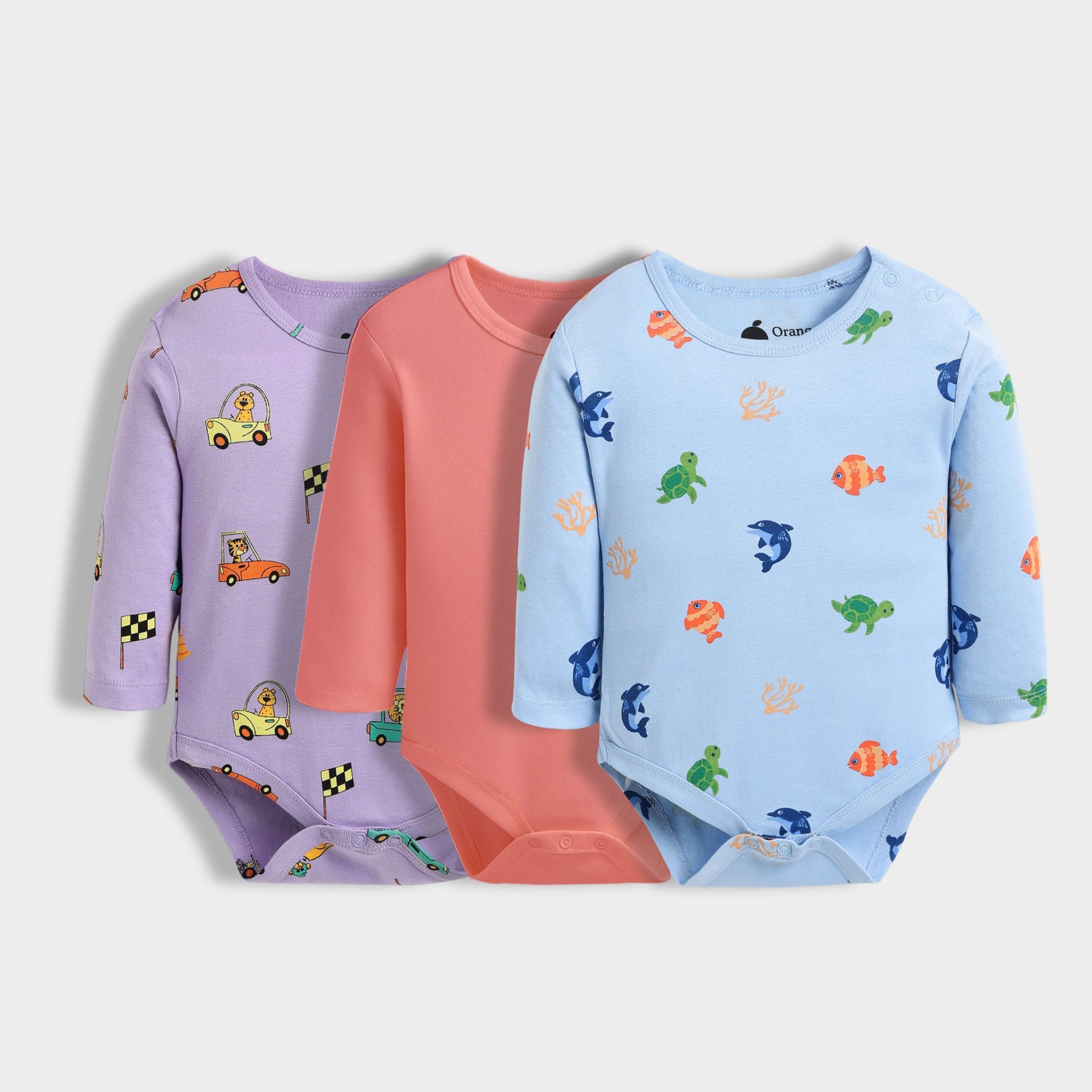 3 Pcs Full Sleeves Bodysuit | Underwater, Cars, Orange