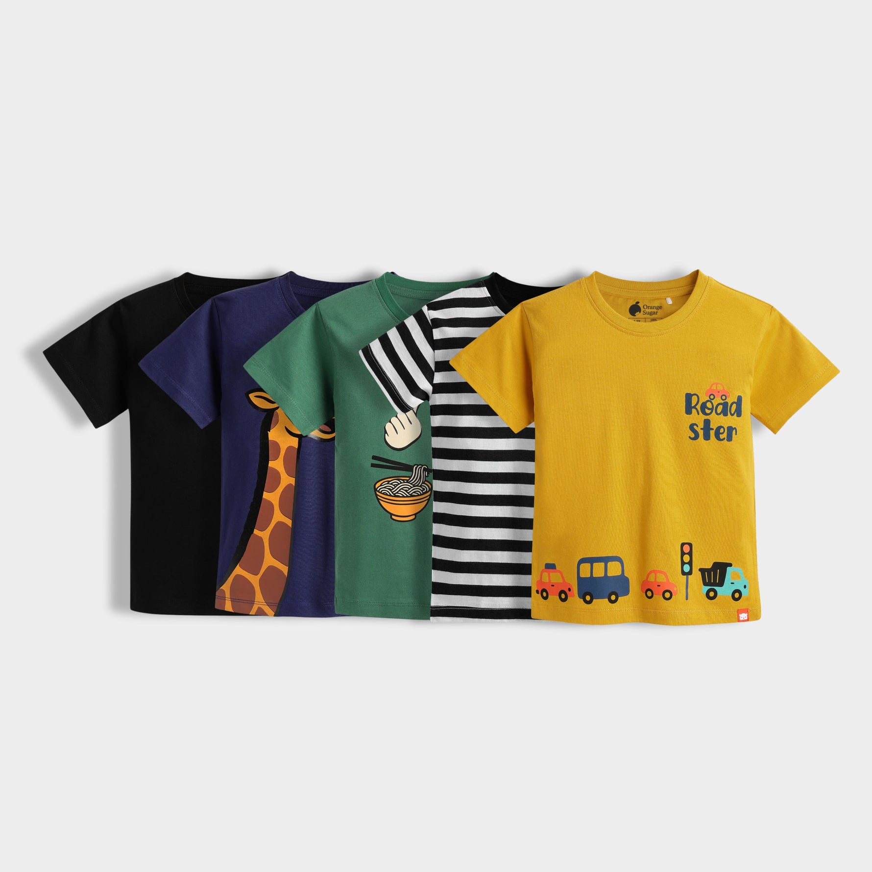 5 Pack Half Sleeves Unisex T-Shirts | Traveller, Sporty Giraffe, Korea, Black Stripes, Road Trip