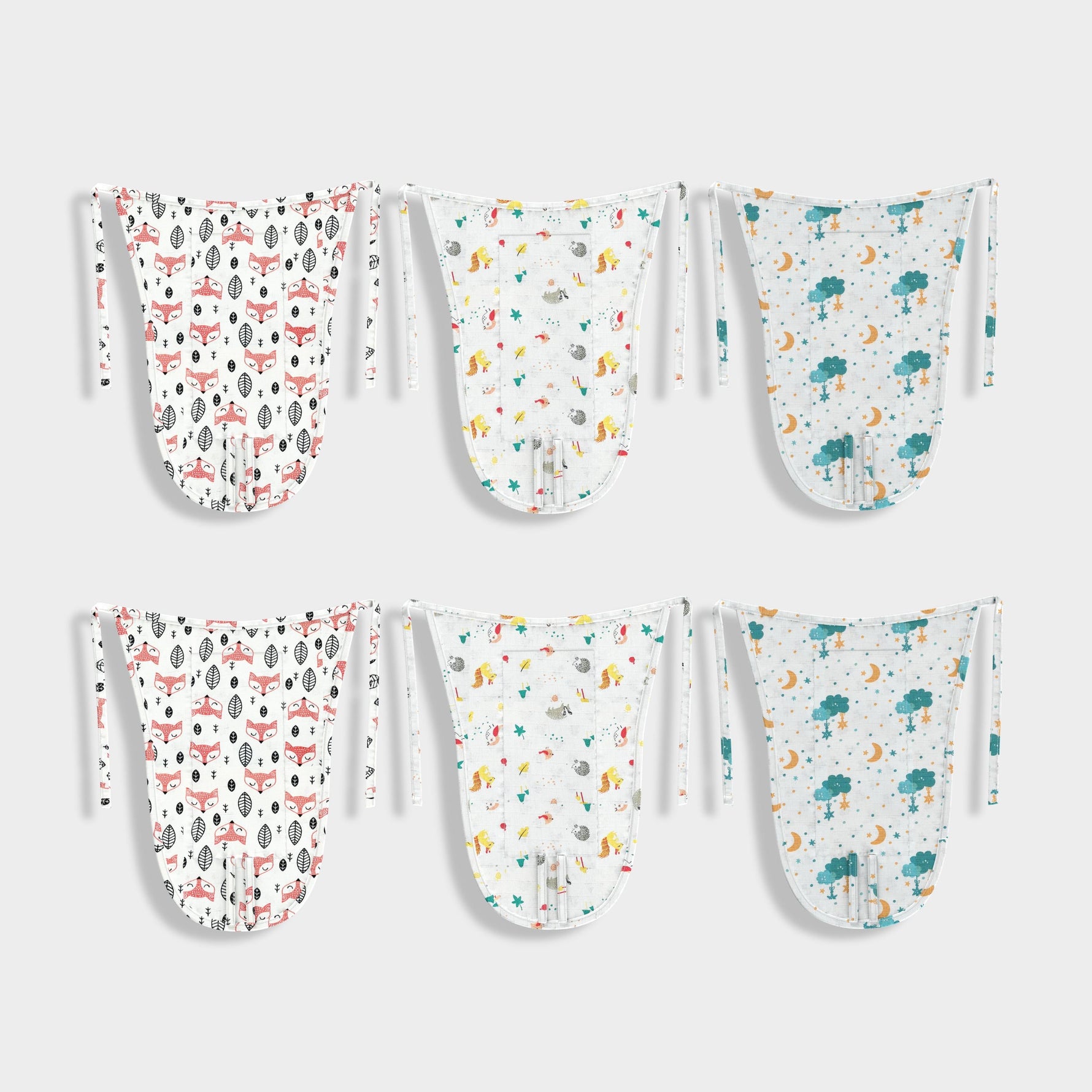 6 Pack Muslin Nappies | Fox, Spikey, Half Moon