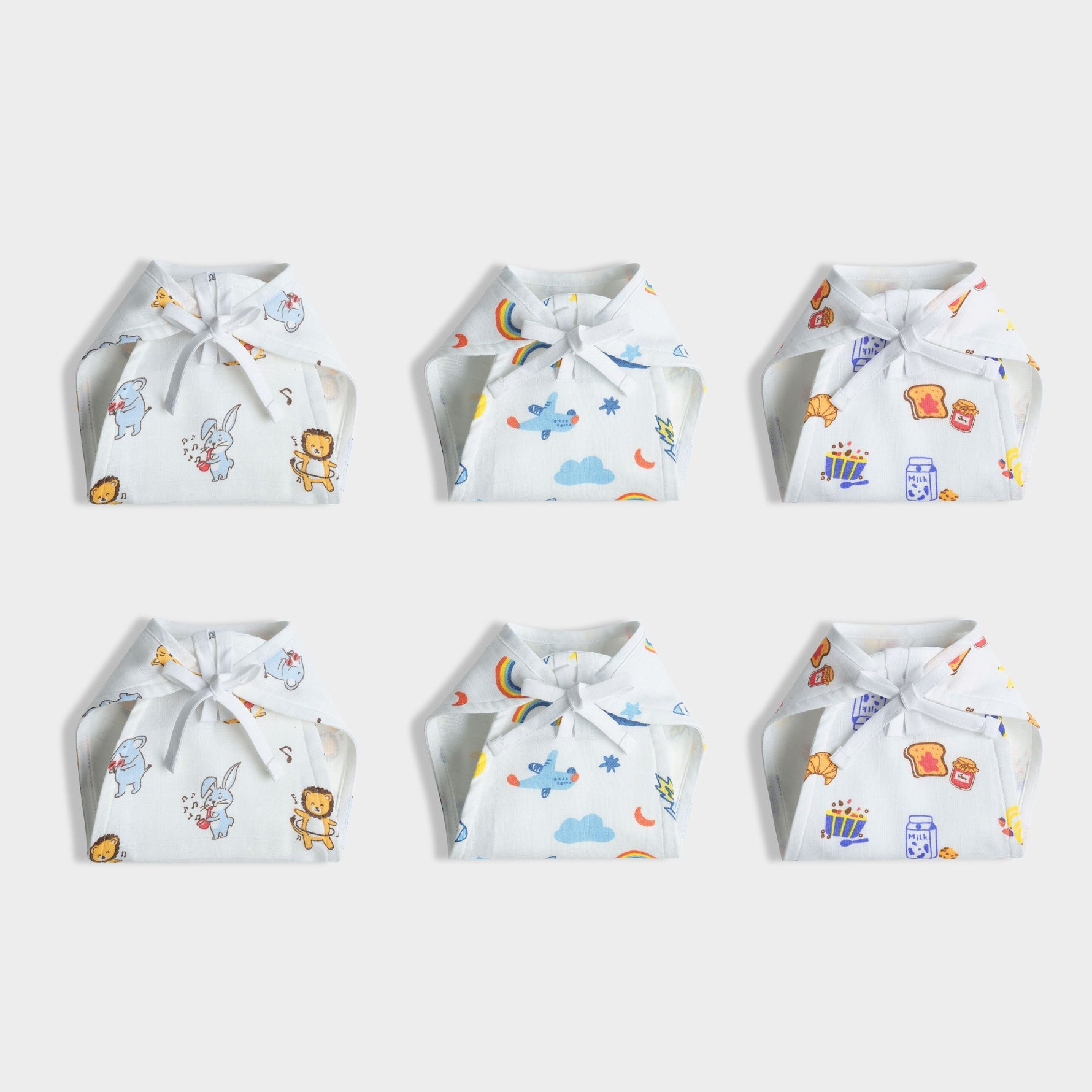 6 Pack Muslin Nappies | Jungle Jingles, Starry, Breakfast