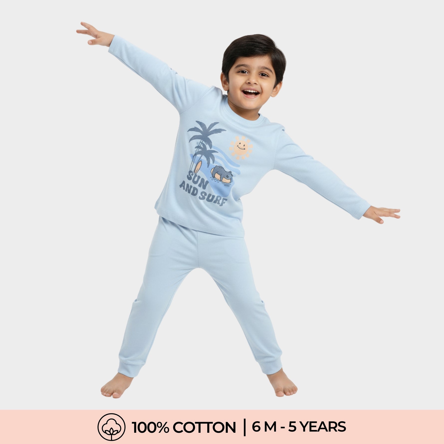 Vibrant Design: Available in enchanting sky-blue color with Sun & Surf pattern, making your little one stand out in playful sophistication.