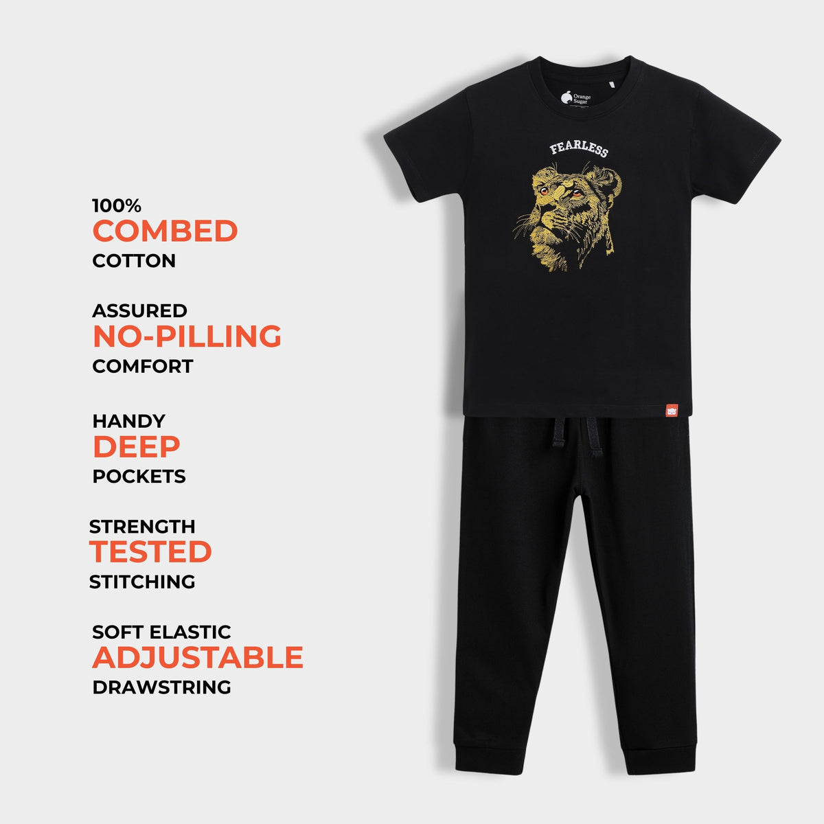 Wrap your little ones in unrivaled comfort and style with our delightful Orange Sugar Half Sleeves T-Shirt & Joggers Set, perfect for playful days and cozy nights.