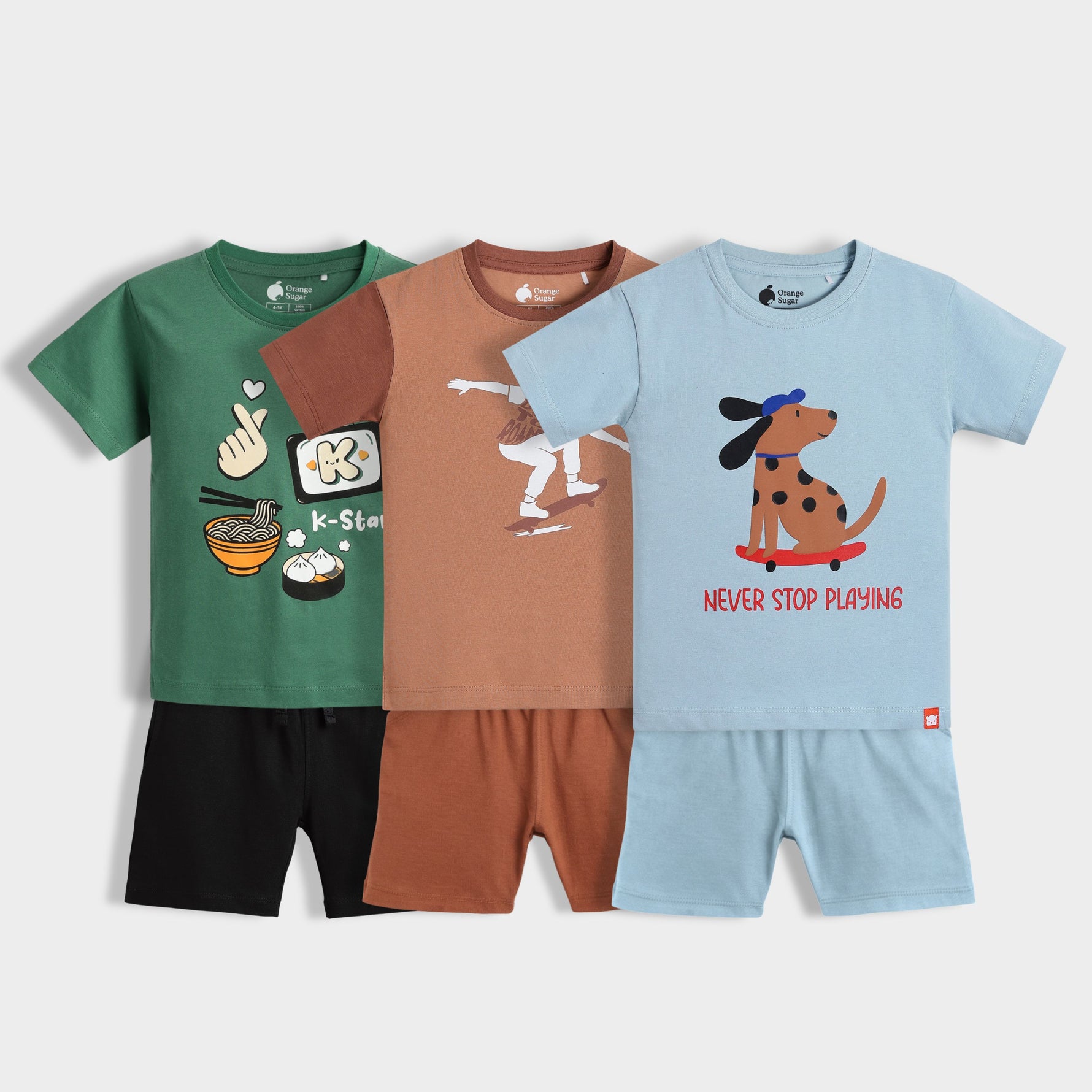 Set Includes: 3 Half Sleeves T-Shirts & 3 Shorts