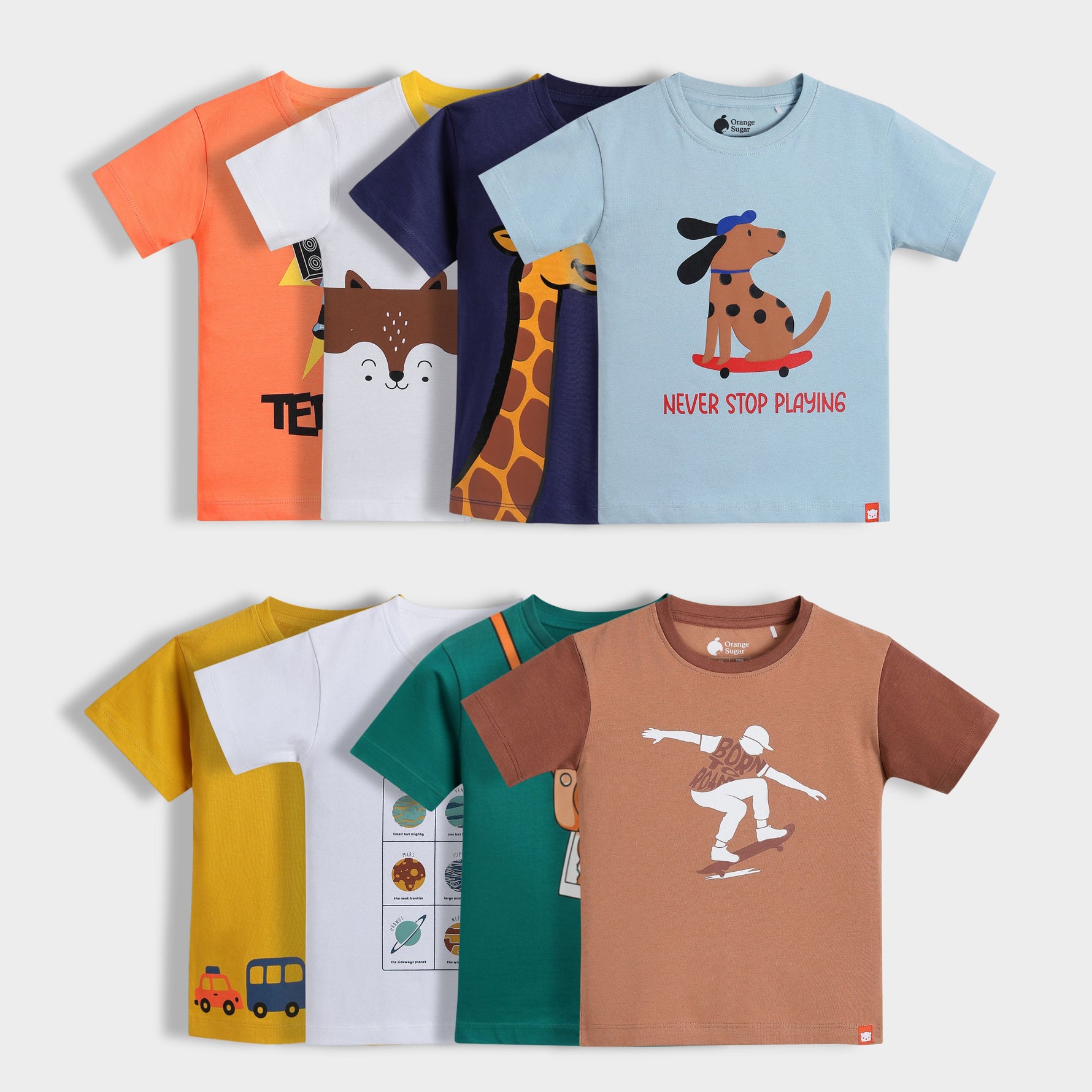 Orange Sugar's comfy cotton T-shirt gives you the flexibility and comfort of a regular tee, with the added advantage of snaps on the shoulders. Paired with shorts they are the perfect addition to your baby's wardrobe.