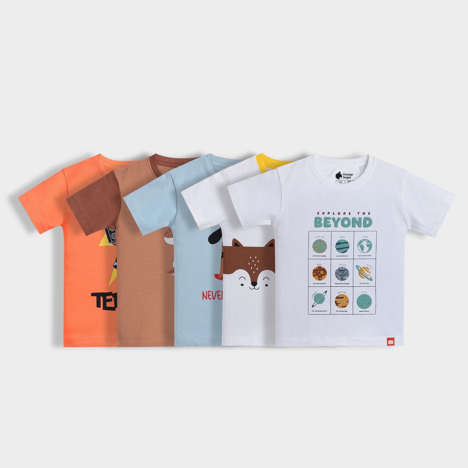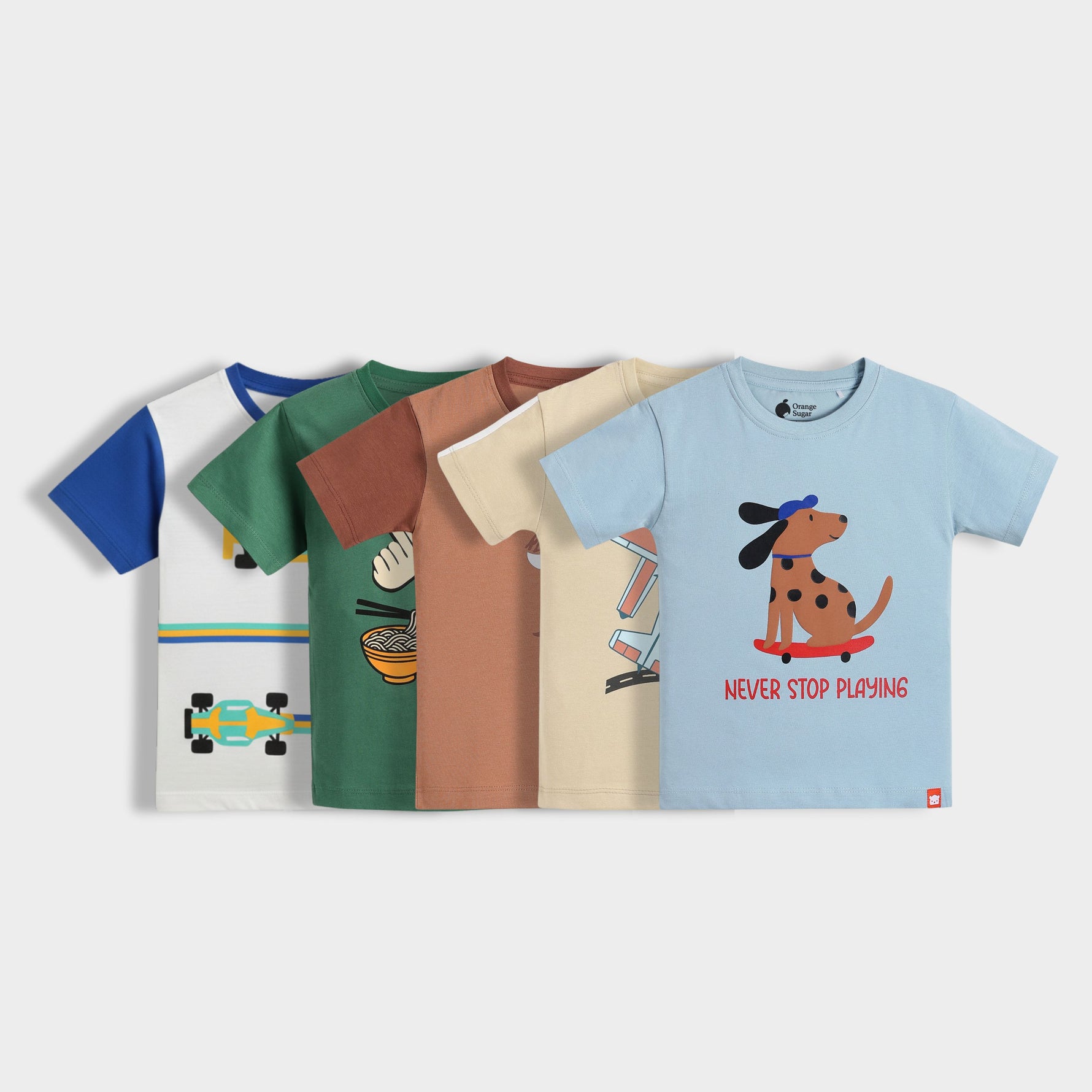 5 Pack Half Sleeves Unisex T-Shirts | Brown, Grey, Olive Green, Blue, Orange