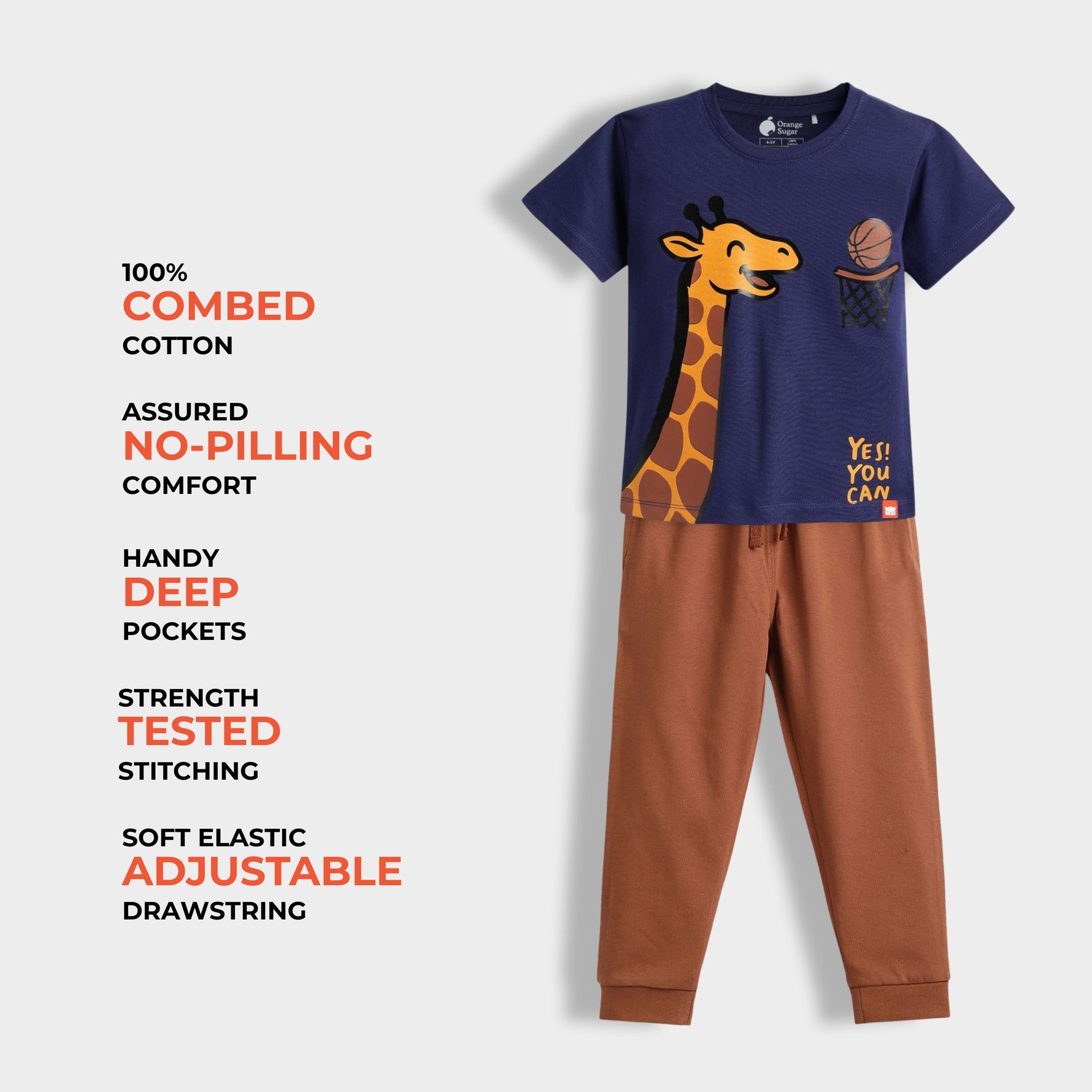 Wrap your little ones in unrivaled comfort and style with our delightful Orange Sugar Half Sleeves T-Shirt & Joggers Set, perfect for playful days and cozy nights.