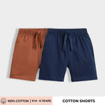 2 Pcs Cotton Shorts | Brown, Blue
