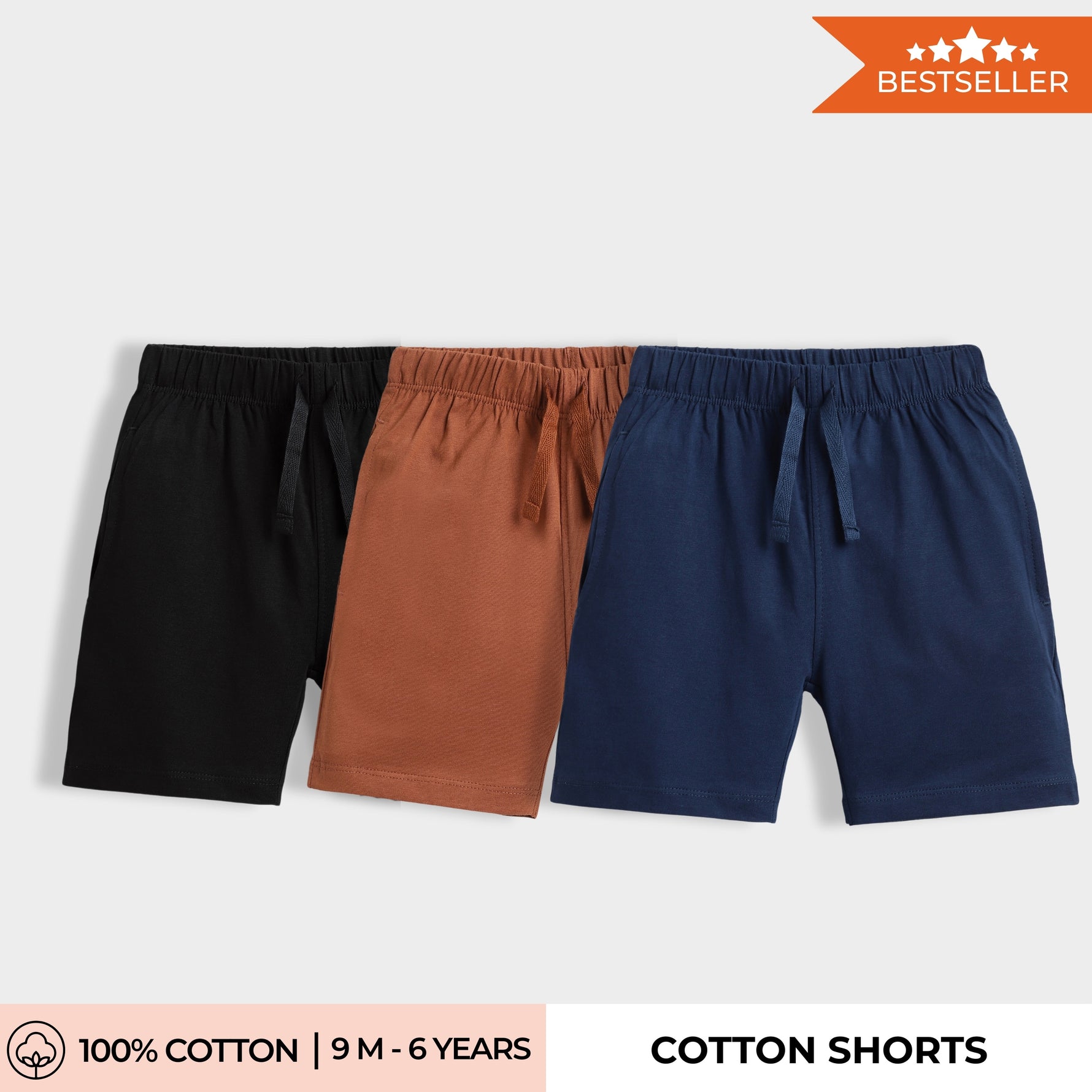 3 Pcs Cotton Shorts | Blue, Green, Brown