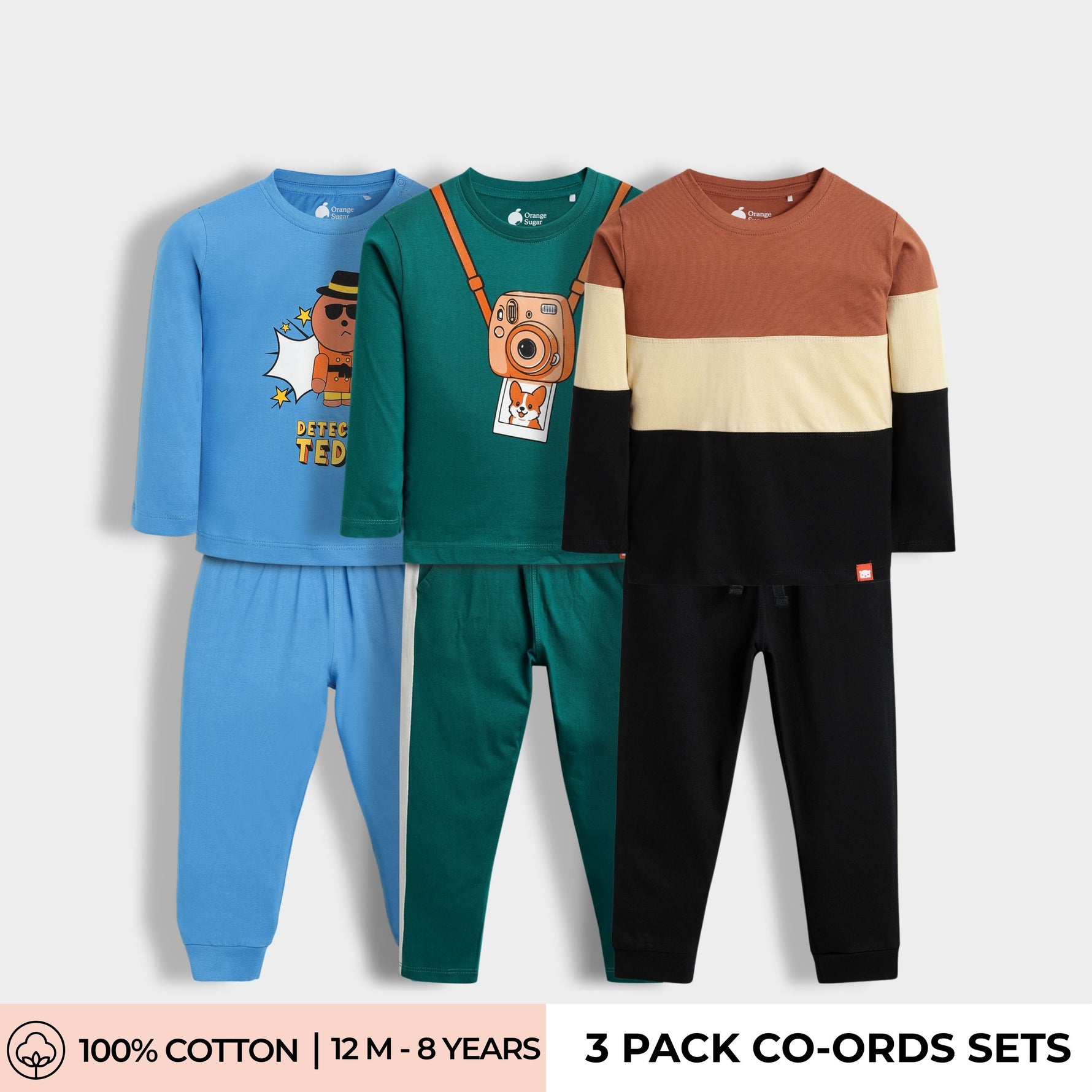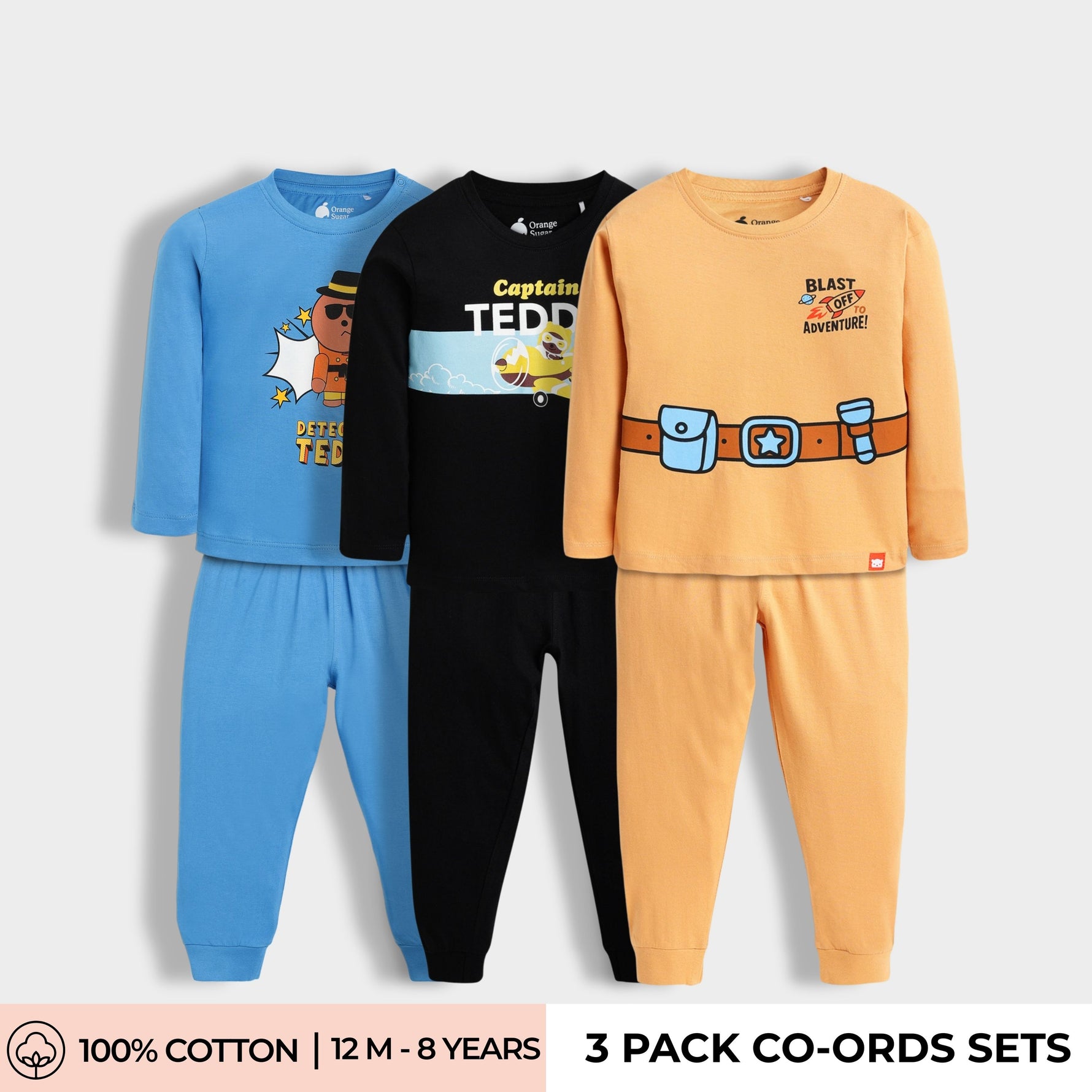 3 Pack Full Sleeves Unisex Co-ord Set | Pasta, Camera, Wings