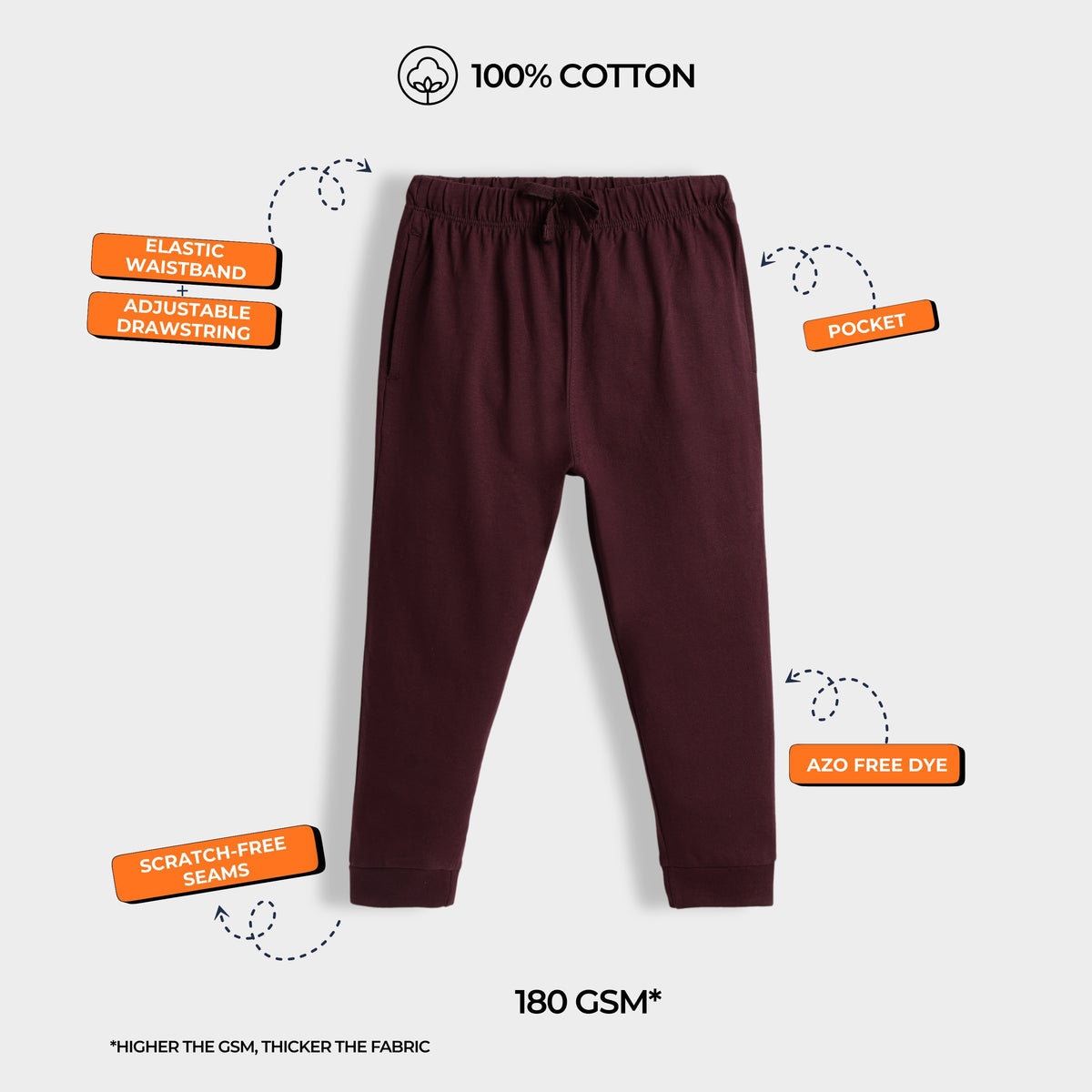 3 Pcs Cotton Joggers | Black, Wine, Blue