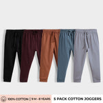 5 Pcs Cotton Joggers | Black, Wine, Brown, Air Force Blue, Grey