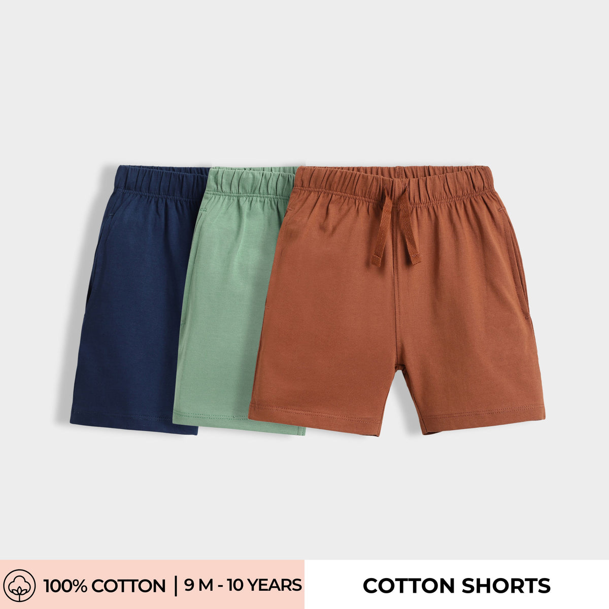3 Pcs Cotton Shorts | Blue, Green, Brown