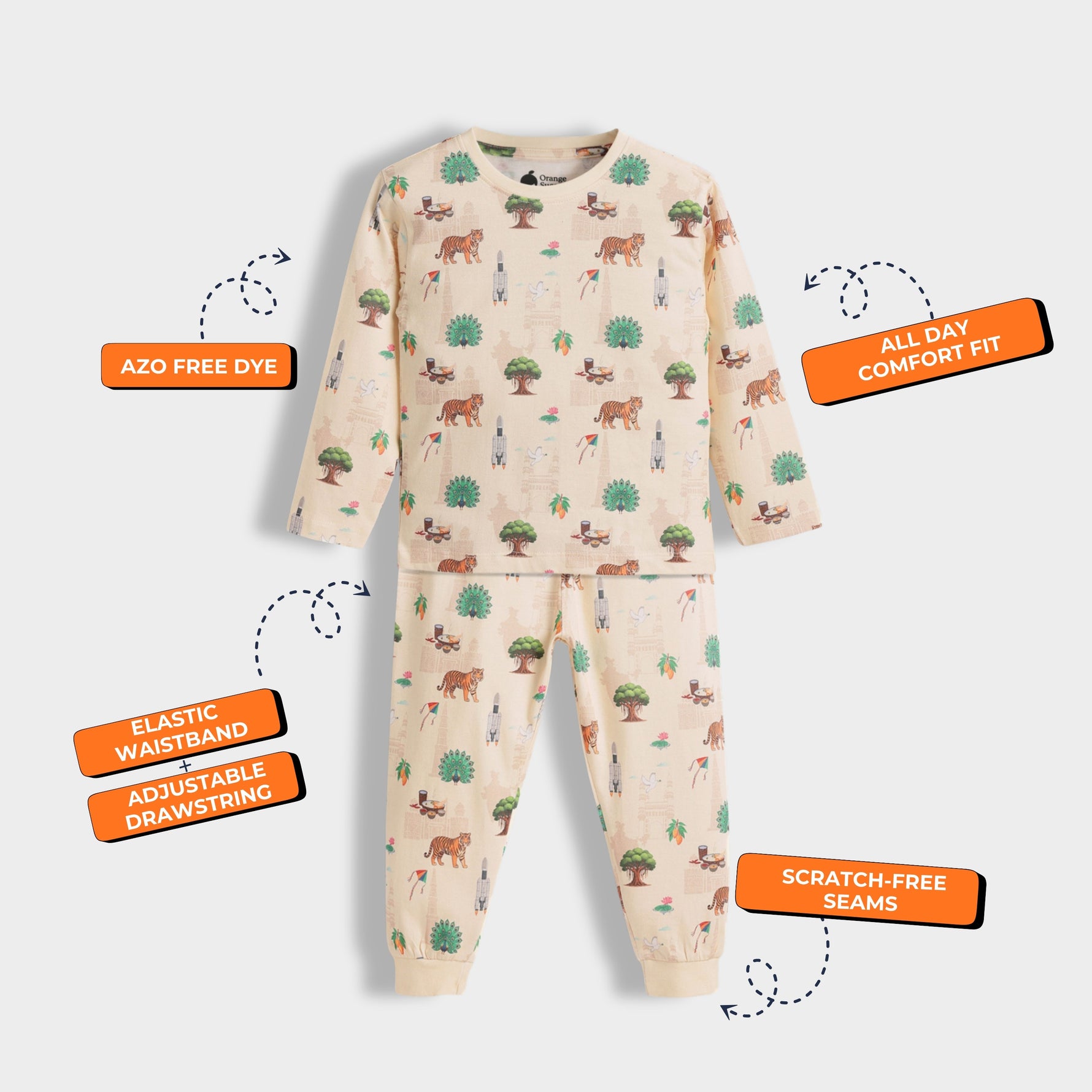 Wrap your little ones in unrivaled comfort and style with our delightful Orange Sugar Full Sleeves T-Shirt & Pant Set, perfect for playful days and cozy nights.