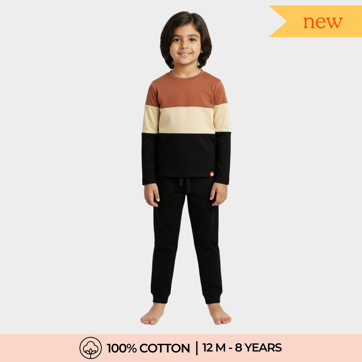 Full Sleeves Unisex T-Shirt & Joggers | Color Block Brown