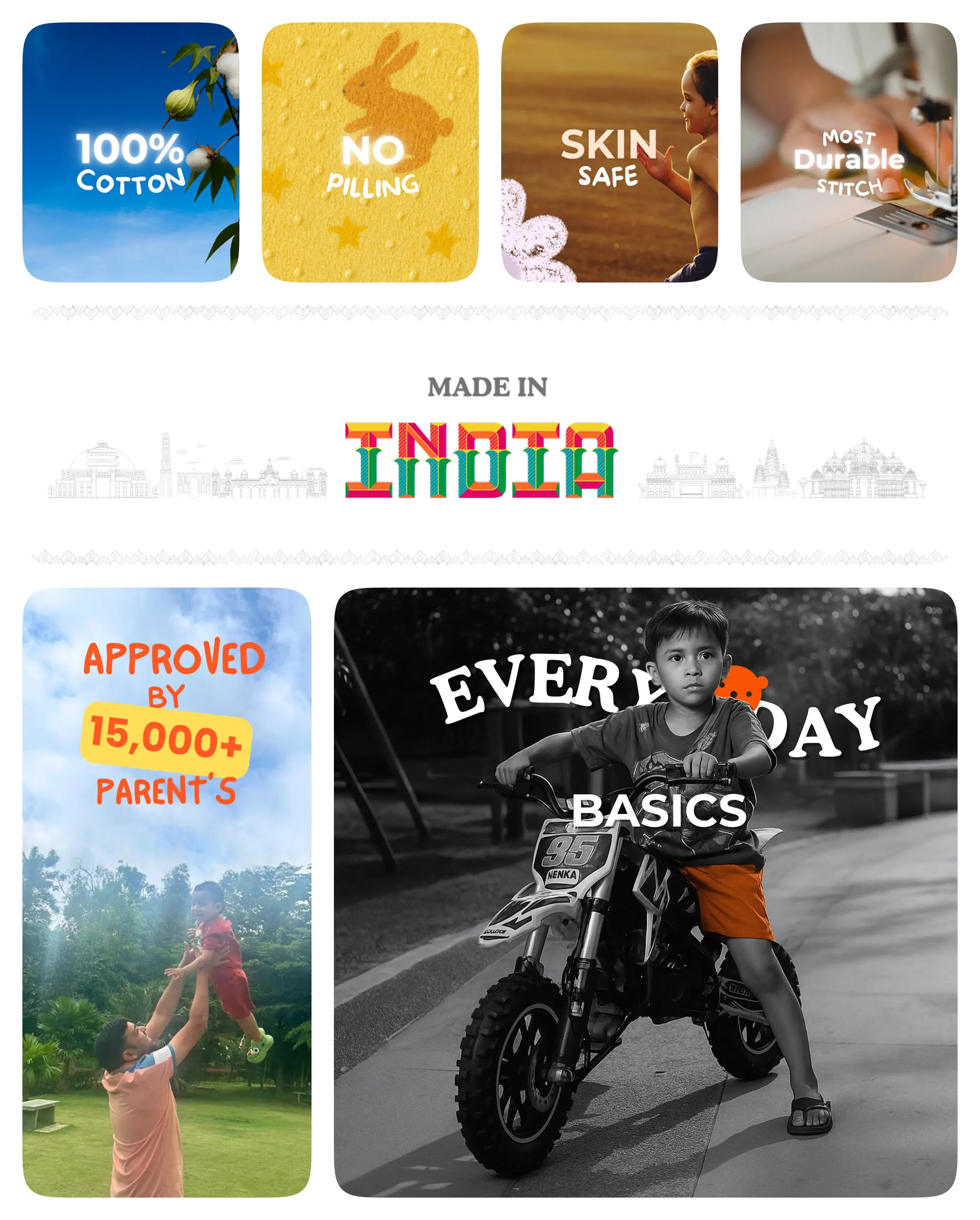 Our 100% Cotton Shorts are made for school days, nap-time, play time and everything in between. With their feather-light cotton fabric and relaxed fit, your little one can jump, roll, lounge, or explore in total comfort.