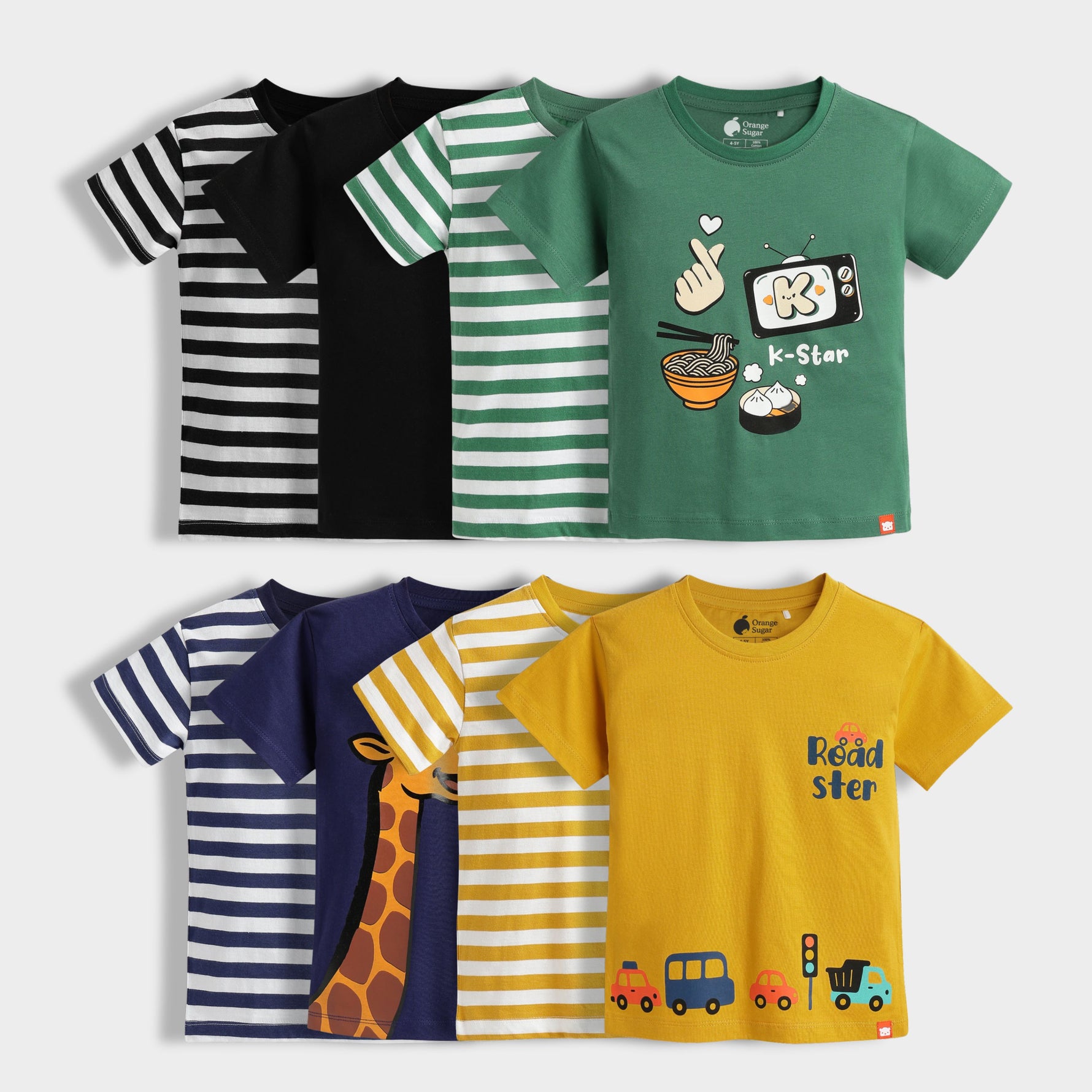 8 Pack Half Sleeves Unisex T-Shirts | Classic Stripes & Fun Graphics