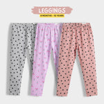 3 Pcs Leggings | Grey Hearts, Light Lavender Tulips, Coral Pink Hearts