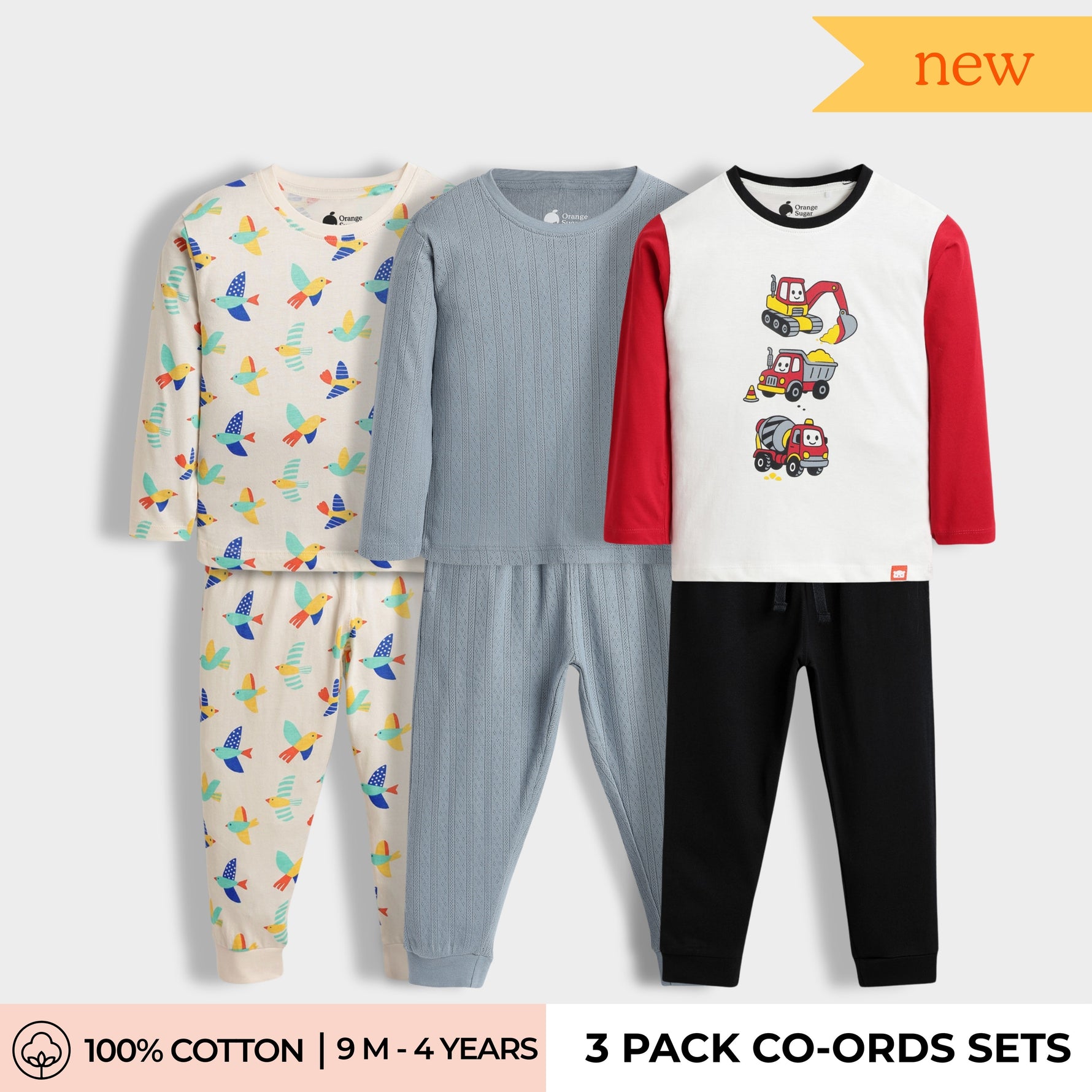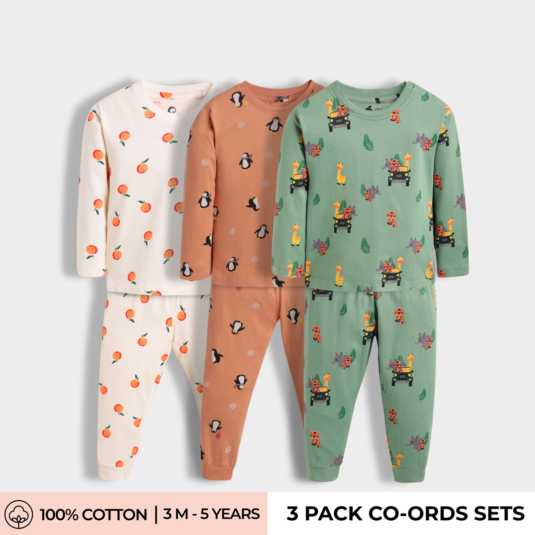 3 Pack Full Sleeves Unisex Co-ord Set | JCB, Cheetah, Lemon