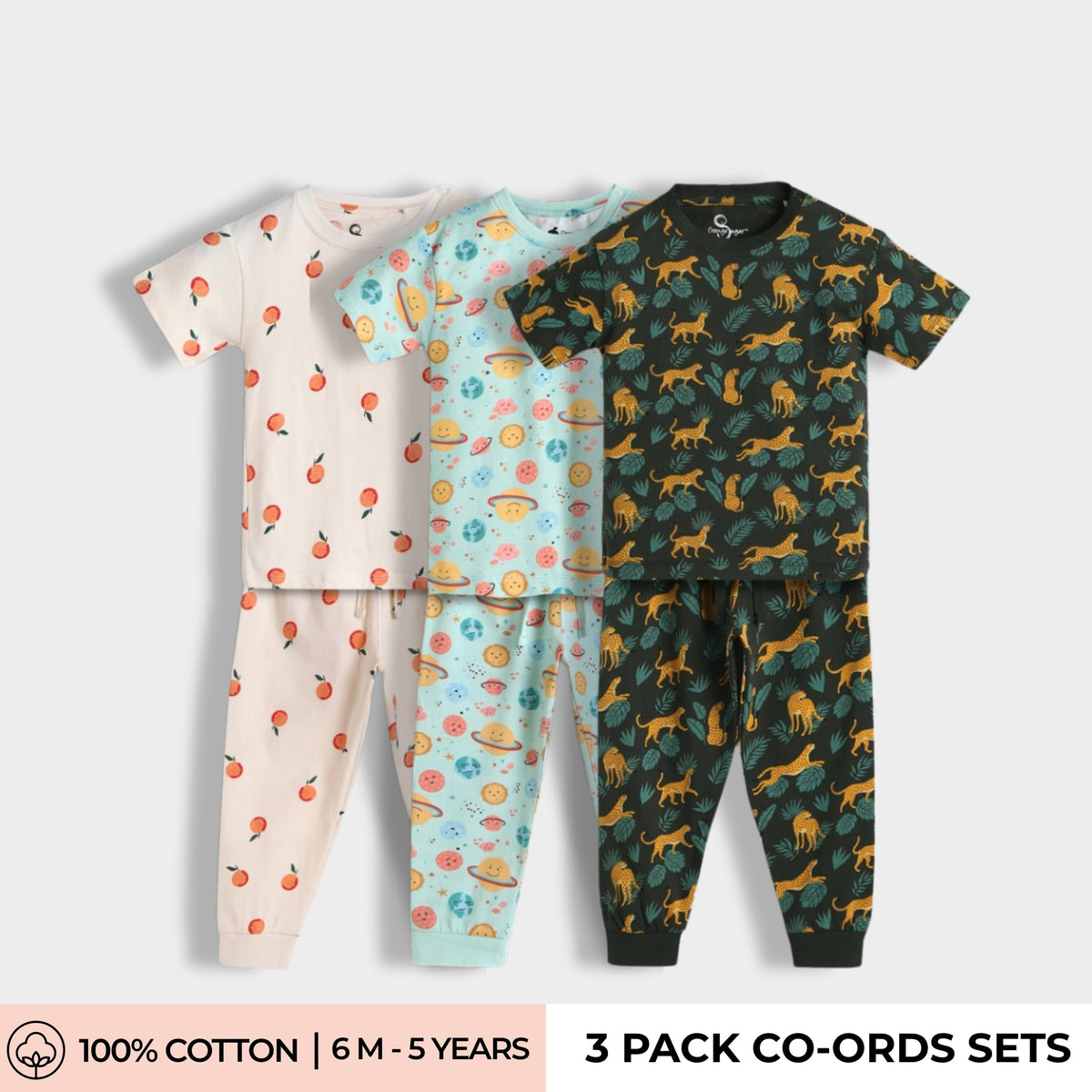 3 Pack Half Sleeves Unisex Co-ord Set | Galaxy, Orange & Cheetah