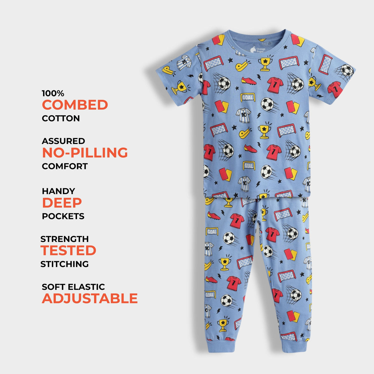 Wrap your little ones in unrivaled comfort and style with our delightful Orange Sugar Half Sleeves T-Shirt & Pant Set, perfect for playful days and cozy nights.