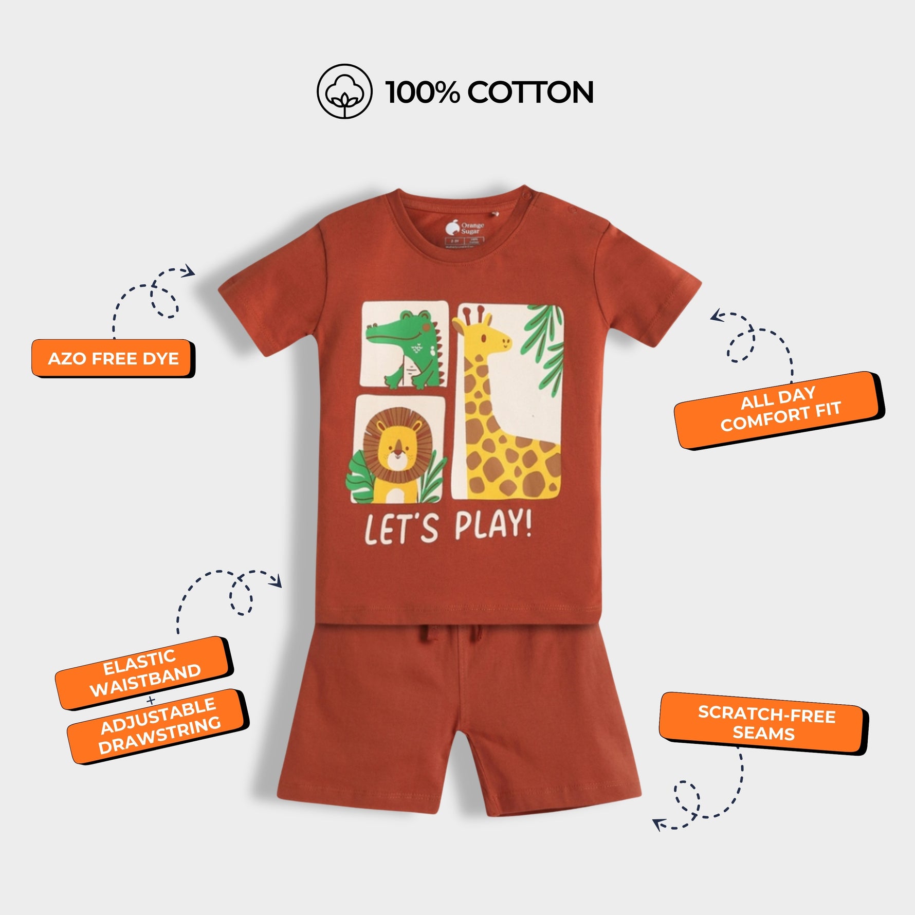 Wrap your little ones in unrivaled comfort and style with our delightful Orange Sugar Half Sleeves T-Shirt & Short Set, perfect for playful days and cozy nights.
