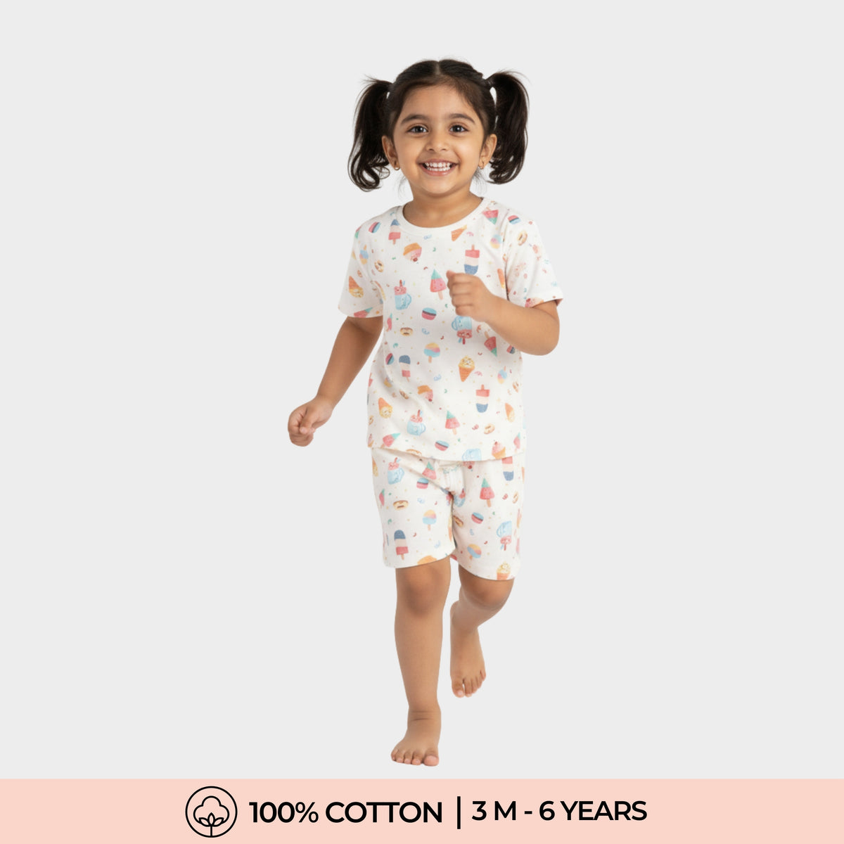Vibrant Design: Available in enchanting Off White color with Icecream Print, making your little one stand out in playful sophistication.Â