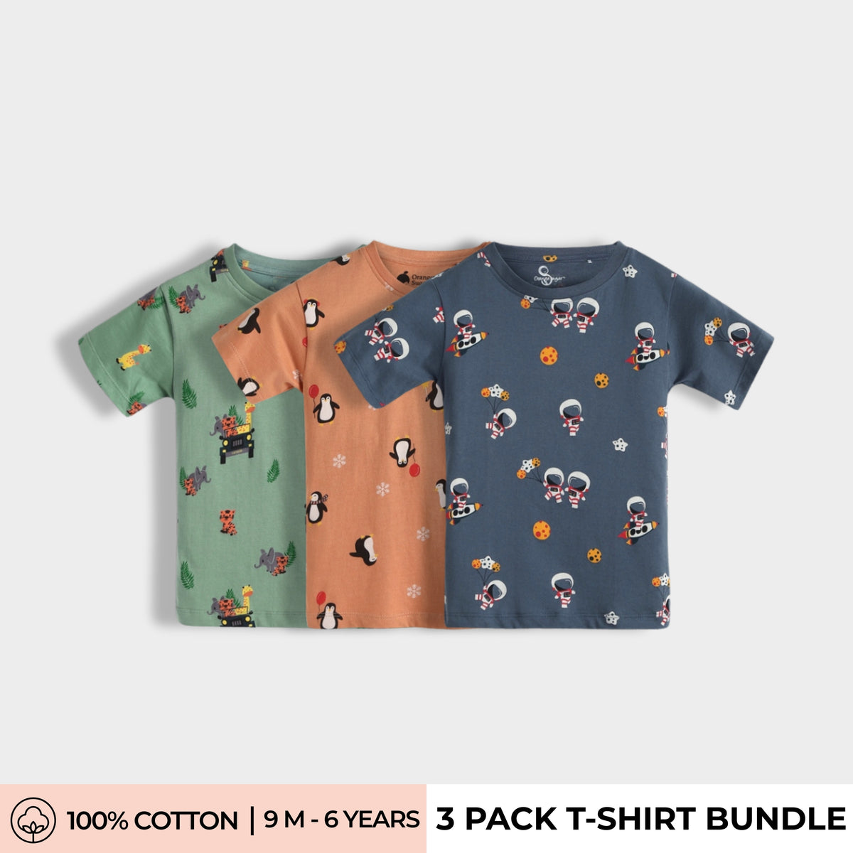 3 Pack Half Sleeves T-Shirt | Jungle, Penguin Chill, Space