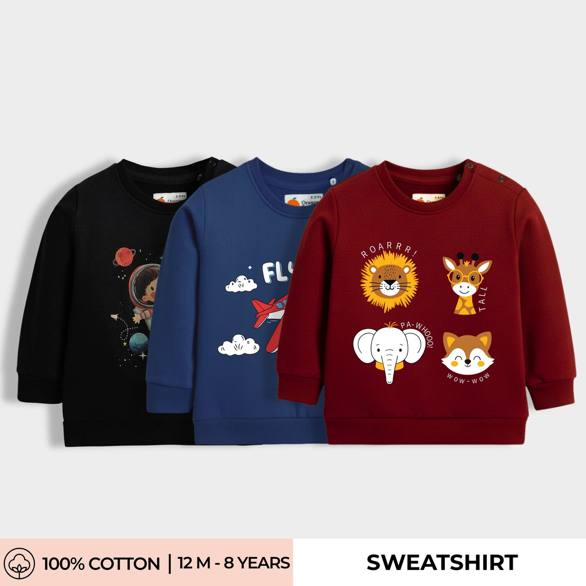 3 Pack Sweatshirts | Space Kid, Fly High, Animal Kingdom