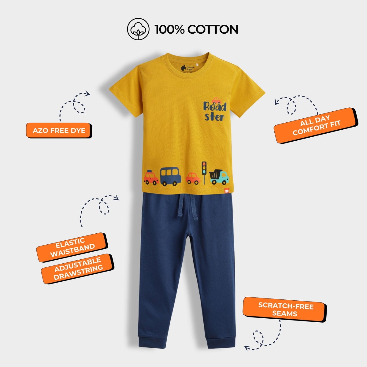 Wrap your little ones in unrivaled comfort and style with our delightful Orange Sugar Half Sleeves T-Shirt & Joggers Set, perfect for playful days and cozy nights.
