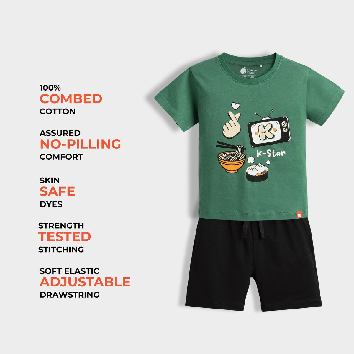 Wrap your little ones in unrivaled comfort and style with our delightful Orange Sugar Half Sleeves T-Shirt & Short Set, perfect for playful days and cozy nights.