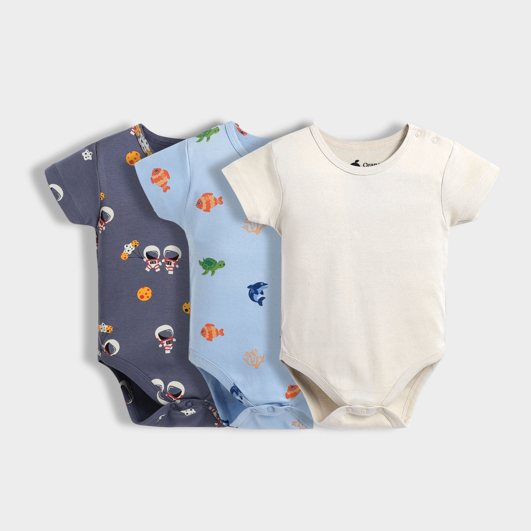 3 Pcs Half Sleeves Bodysuit | Space, Underwater, Off White