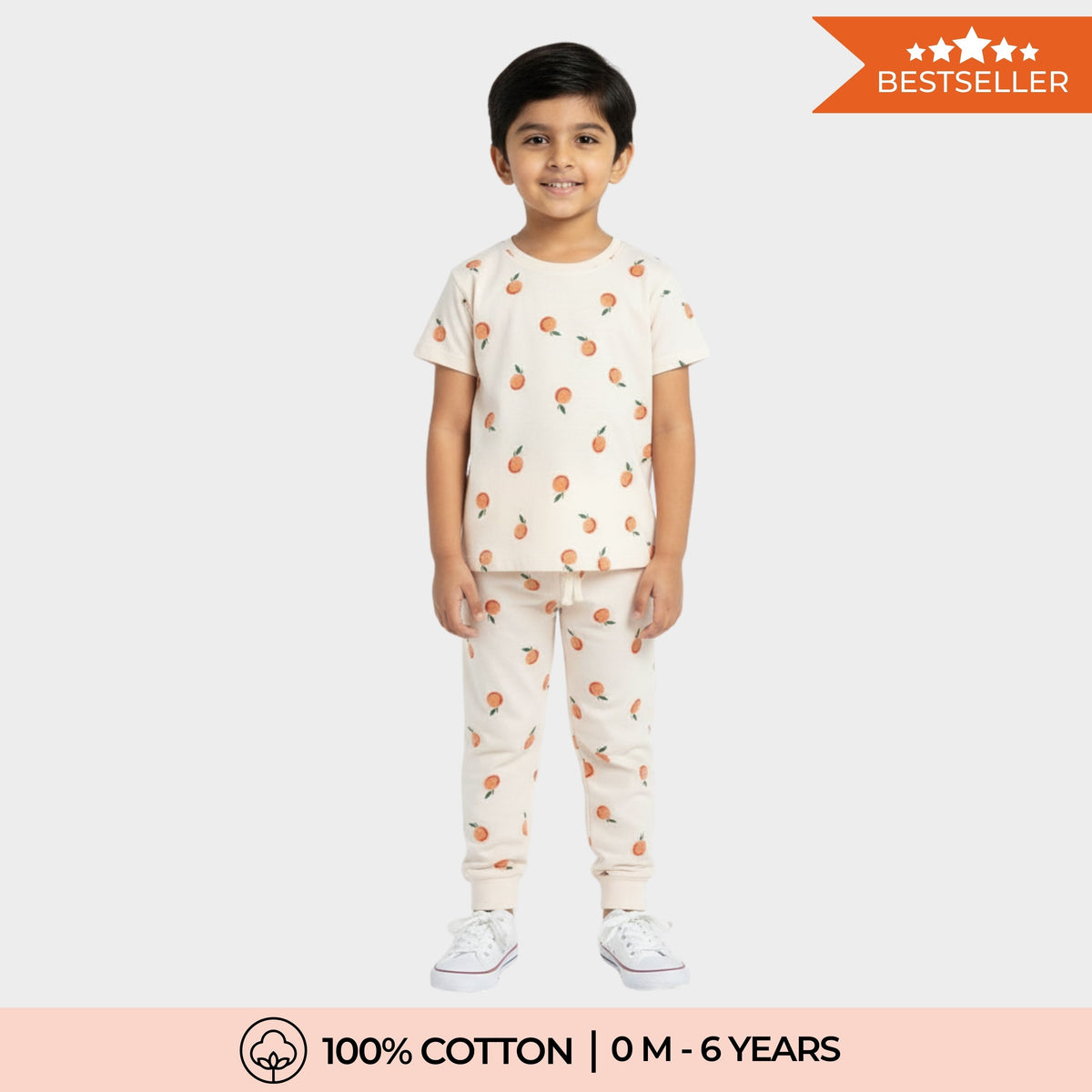 Wrap your little ones in unrivaled comfort and style with our delightful Orange Sugar Half Sleeves T-Shirt & Pant Set, perfect for playful days and cozy nights.